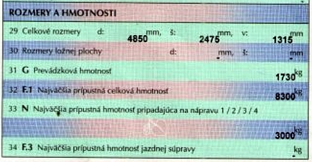 | Ciężar: | 1 730 Kg | Ciężar całkowity: | 8 300 Kg |